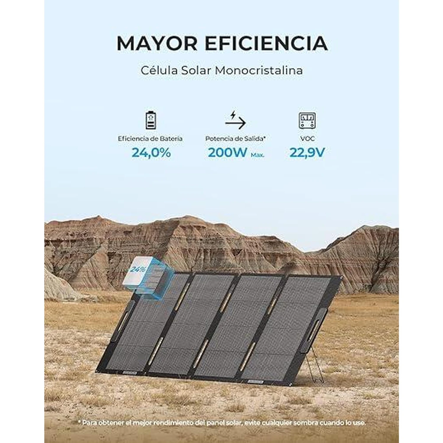 BLUETTI Panneau Solaire MP200, Panneau Solaire 200W pour Centrales Électriques EB3A/EB55/EB70/AC200P/AC200MAX/AC300, Support Réglable, Pliable et Portable pour Camping, Jardin, Voyage